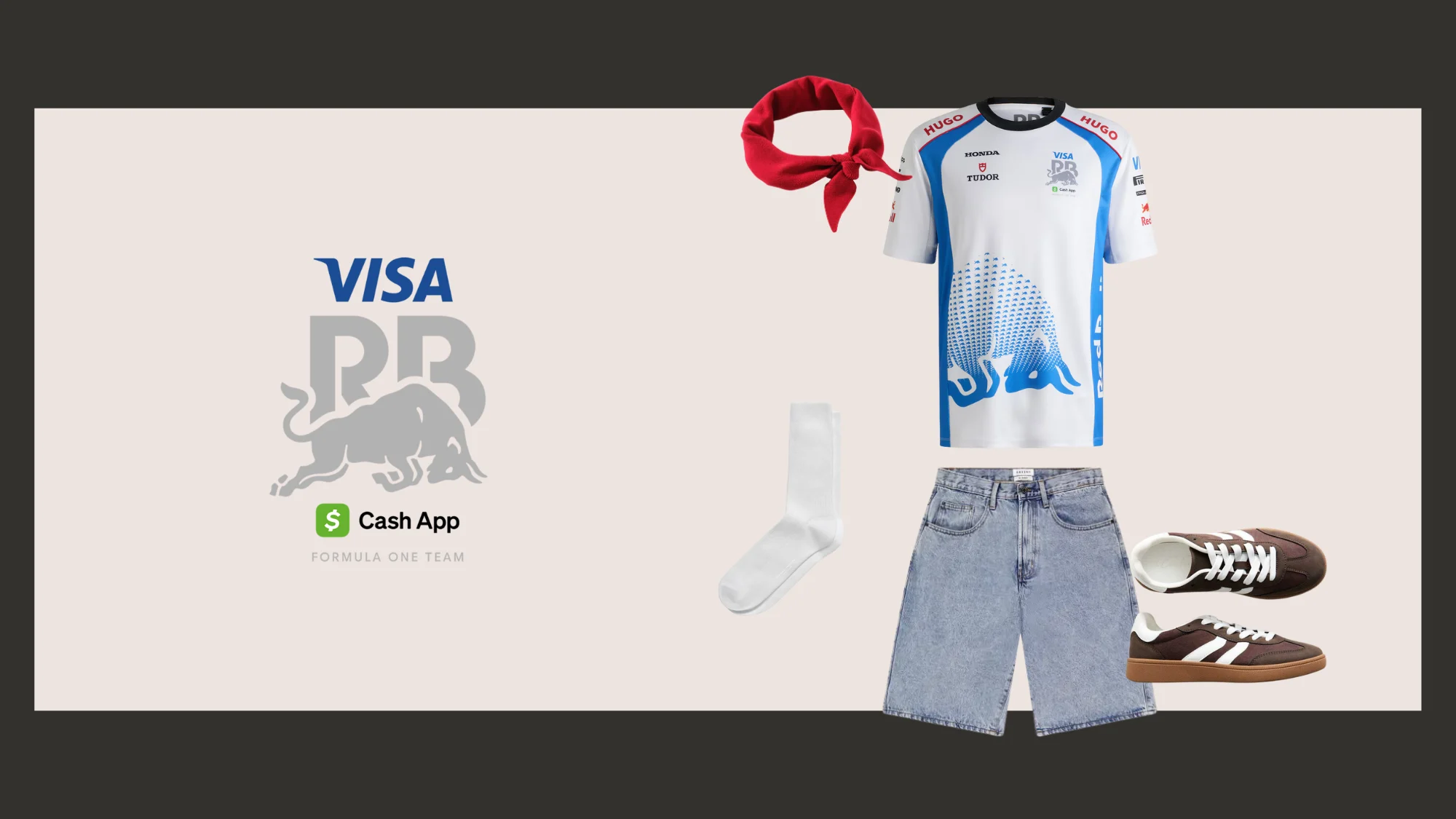 The Racing Bulls race shirt makes a bold statement with its white base and blue accents. Keep the energy high but wearable by pairing it with light-wash denim shorts and brown trainers.